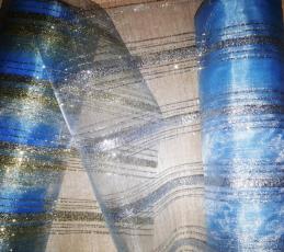 GS48100-4-18/Органза с золотой/ серебрянной полосой 0,48 м х 9,14 м цвет голубой